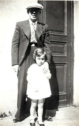 Gelukkig werkte haar vader als zelfstandig aannemer-metser en had hij minder last van de crisis. Jeanneke beleefde in haar vroege jeugd een tamelijk zorgeloos bestaan. Op de linkse foto zien we haar als peuter met haar vader aan de voordeur.