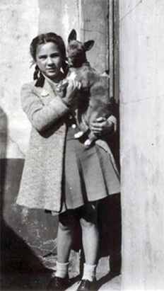 Op de middelste foto zien we haar met haar hond “Max”, Jeanneke zal praktisch heel haar leven een hond of zelfs meerdere honden houden.