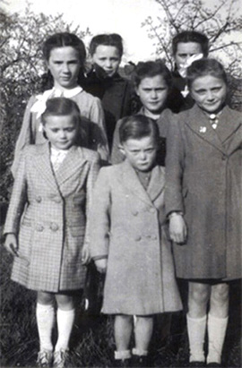 Haar enige broer Jos is 11 jaar ouder en gaat reeds werken als Jeanneke nog naar de lagere school gaat, daarom gaat zij meer om met vriendinnen. Op de rechtse foto zien we haar waarschijnlijk op schooluitstap, waar de foto genomen werd is onbekend alsook de namen van de klasgenoten.